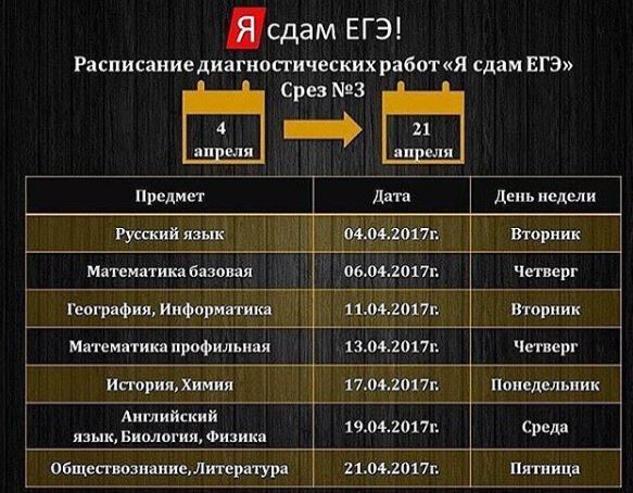 Расписание диагностических работ "Я сдам ЕГЭ"