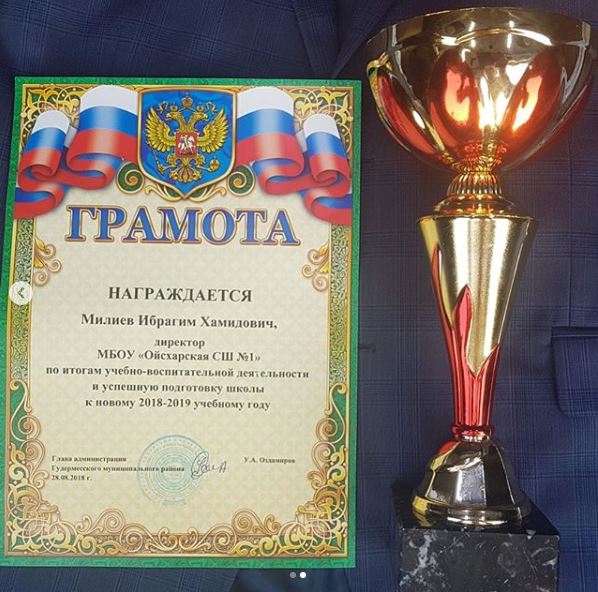 В очередной раз наш директор- Милиев Ибрагим Хамидович доказал, что он один из самых лучших директоров школ. Он не раз участвовал в разных конкурсах и побеждал неоднократно.